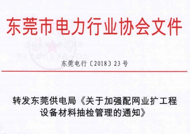東莞電行〔2018〕23號(hào)--轉(zhuǎn)發(fā)東莞供電局《關(guān)于加強(qiáng)配網(wǎng)業(yè)擴(kuò)工程設(shè)備材料抽檢管理的通知》