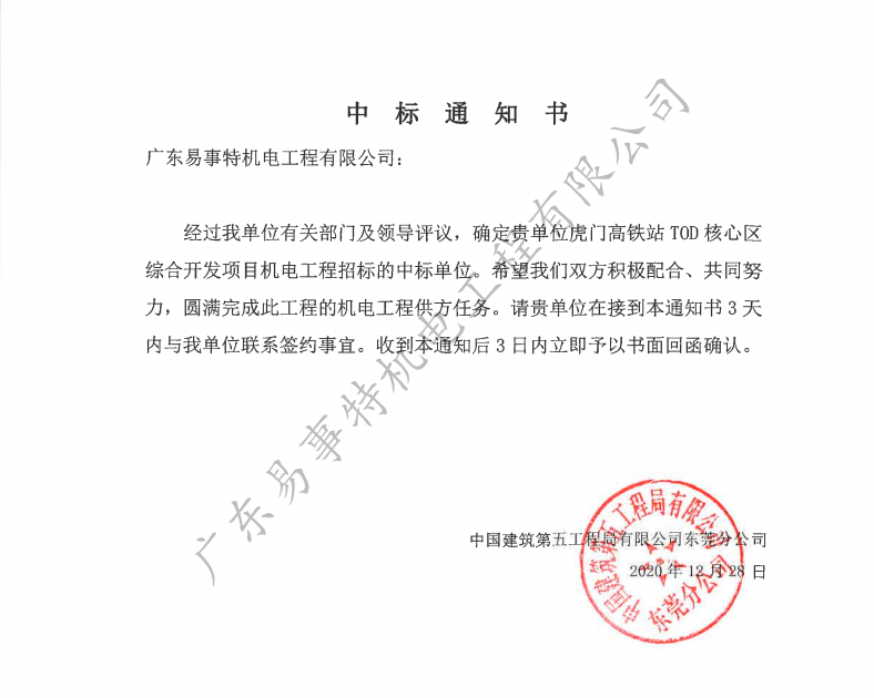 近日,易事特機電成功中標虎門高鐵站TOD核心區(qū)綜合開發(fā)項目機電工程,本項目位于東莞虎門鎮(zhèn),項目占地約560畝,總投資為240億元,建設規(guī)模為135萬平方米,總工期486天。
